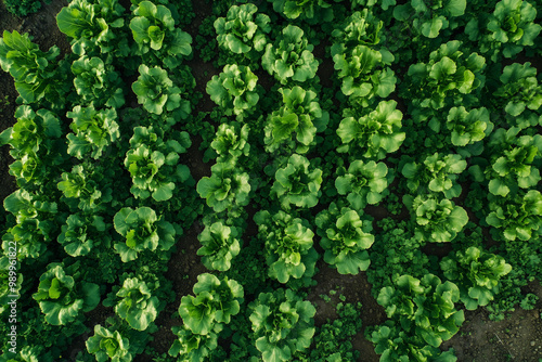 An Overhead View of a Field of Leafy Greens Ready for Harvest: A Fresh and Vibrant Landscape