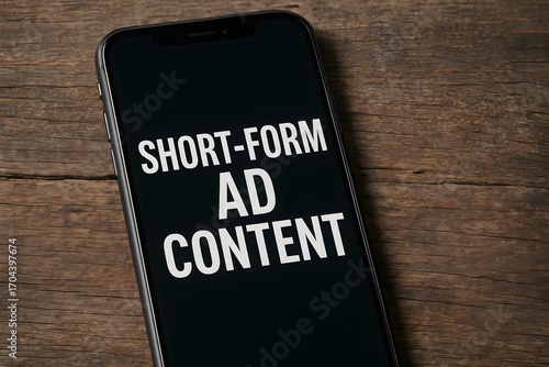 An up-close image of a smartphone displaying the text SHORT-FORM AD CONTENT.