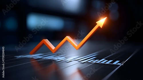 An upward-pointing orange arrow on a financial growth chart, indicating a positive trend in the economy or business performance