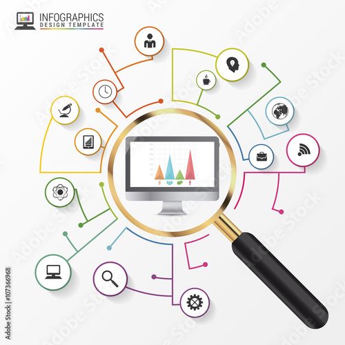 Analysis graphic design concept with magnifying glass. Vector