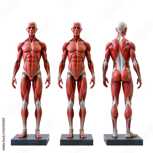 Anatomically Accurate Male Figure Model Showcasing Muscular Structure from Multiple Angles for Educational Use