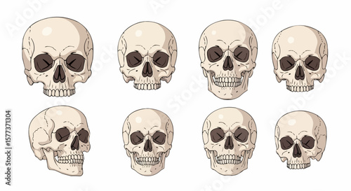 Anatomically Correct Human Skulls – Hand-Drawn Line Art Vector Illustration Set Isolated on White