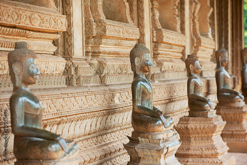 Ancient copper Buddha statues located outside of the Hor Phra Keo temple (former temple of the Emerald Buddha) in Vientiane, Laos.