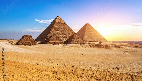 Ancient pyramids at sunset