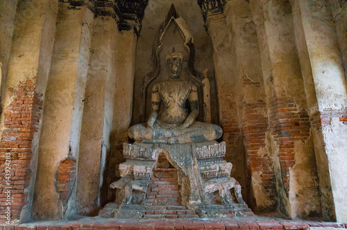 Ancient ruins of Buddha statue at Wat Chai Wattanaram temple