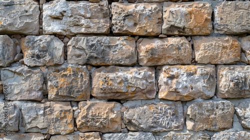Ancient stone wall of an 18th century castle or fortress with weathered and cracked bricks in close up view