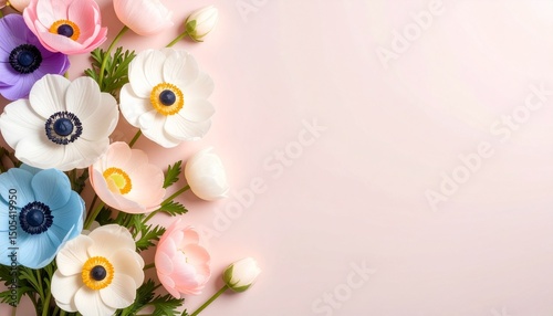 Anemone flowers. Close-up spring and autumn flowers on the pastel background