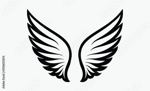 wing, angel wings, feather, bird, eagle, angel, flying, fly, silhouette, vector, black, black-and-white, icon, illustration, isolated, graphic, design, tattoo, fantasy, decorative, art, logotype, emblem, symbol, animal, flight, mythical, celestial, spiritual, bundle, set, drawing, vignetting, abstract, stylish, outline