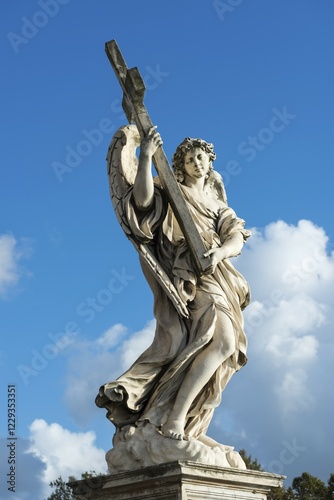Angel with the Cross (Angelo con la Croce), by Ercole Ferrata, angel statues with symbols of the Passion by Bernini, Ponte Sant'Angelo, Rome, Lazio, Italy, Europe