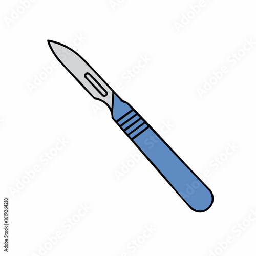 Angled Illustration of a Surgical Scalpel with Blue Handle and Blade
