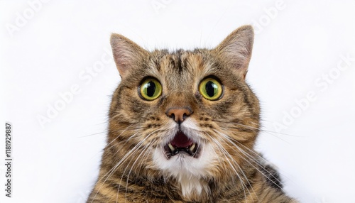 Angry and surprised cat isolated on white background with a funny and excited expression