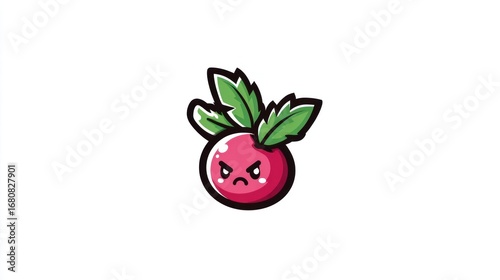 radish, vegetable, angry, cartoon, cute, expression, red, green, leaf, character, food, isolated, illustration, graphic, design, digital, artwork, simple, clip art, icon, emoticon, digital artwork, adorable, vector, graphic design, white background, copy space, children, children, humor, fun, friendly