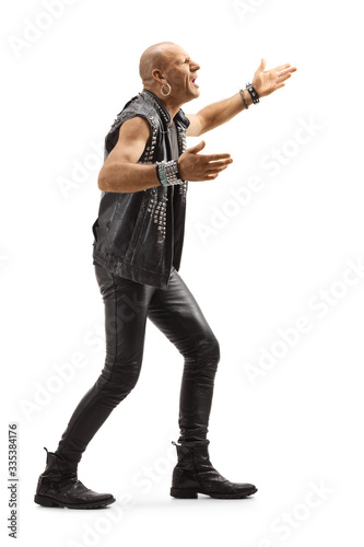 angry, punk, 1, adult, aggressive, agression, arguing, argument, background, bald, caucasian, expression, full, gesture, gesticulate, guy, hand, isolated, leather, length, male, man, 1, person, pose, problem, profile, quarrel, rock, screaming, shot, shouting, single, studio, style, upset, violence, violent, white