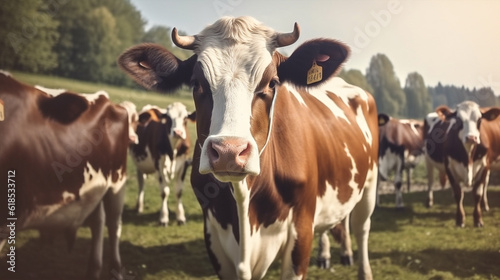 animal farming agricultural livestock cow pasture meadow cattle nature grass. Generative AI.
