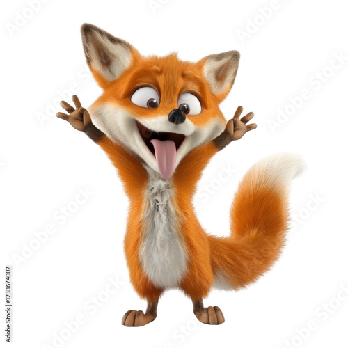 fox, animated, character, eye, playful, cartoon, expression, tongue, arm, excited, animal, cute, furry, mammal, tail, fun, happy, joyful, smiling, wild, nature, orange, ear, nose, whisker, friendly, pose