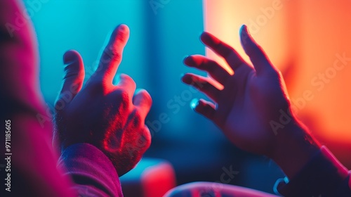 Animated Hands Gesturing During Passionate Business Discussion With Vibrant Background