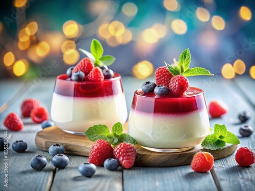 Animation of Sweet Dessert Panna Cotta with Berry Cream and Jelly - A Visual Delight for Dessert Lovers