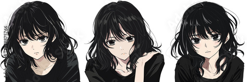 anime, cartoon, clip art, japanese, asian, woman, hair, beauty, face, illustration, vector, fashion, person, lady, model, people, eye, lip, brunette, head, smile, art, black, smiling