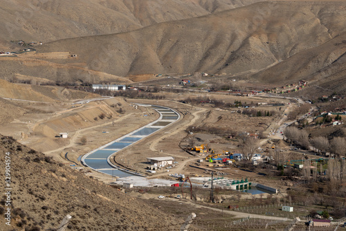 Ankara/Turkey-March 08 2020: Pools of evacuation for water of Lake Eymir,.