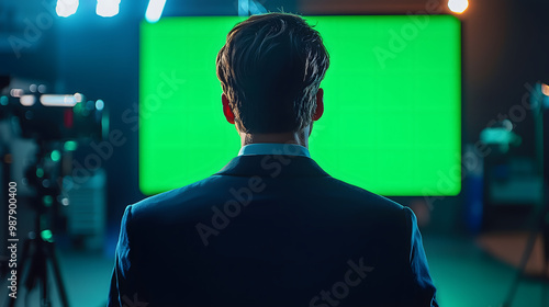 Anonymous Businessperson using Chroma Key Display. Stylish Bright Workplace. Over Shoulder Close Up