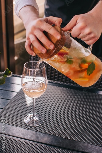 Anonymous man pouring lemonade in glass