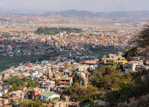 Antananarivo city view, capital of Madagascar. Tanarivo is a city of 3 million Madagascarians, who often farm rice and other crops. Villagers living nearby Antananarivo.