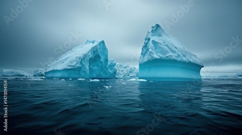 Antarctic icebergs, ocean, gloomy sky, climate change