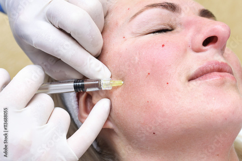Anti-age injection therapy. Mimic wrinkles reduction.