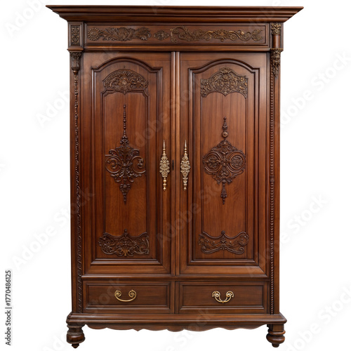 antique, cabinet, clothes rack, furniture, wood, carved, ornate, vintage, french, european, traditional, classic, elegant, luxury, bedchamber, storage, display, heirloom, mahogany, oak, walnut, dark, solid, handcraft, detailed, decorative, gothic, baroque, rococo, renaissance, old, wooden, intricate, carving, hardware