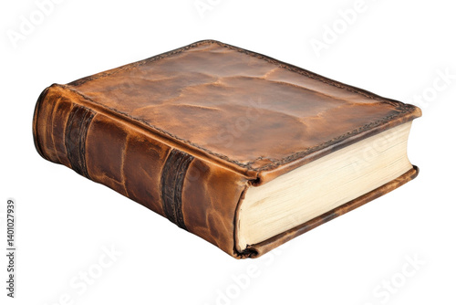 Antique Leather Bound Book Aged Texture Rich Brown Hues Isolated on Black on transparent background