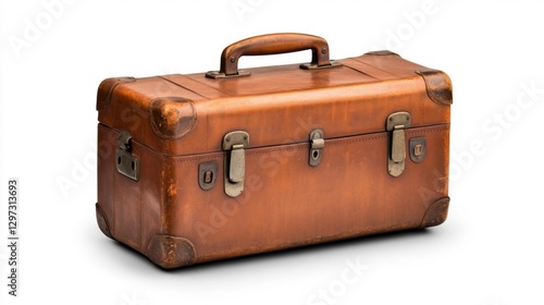 vintage, leather, suitcase, metal, clasp, handle, isolated, old, retro, baggage, travel, storage, box, rugged, antique, worn, brown, timeless, hard-wearing, craftsmanship, container, rustic, aged, accessory, classic, fashionable, protective, elegant, design, fashion, dependable, sturdy, handcraft, quality, traditional, heritage, old-fashioned, practical