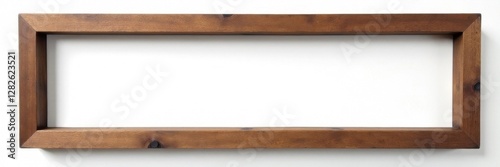 Antique long wooden frame, canvas removed, white background, rectangle, retro
