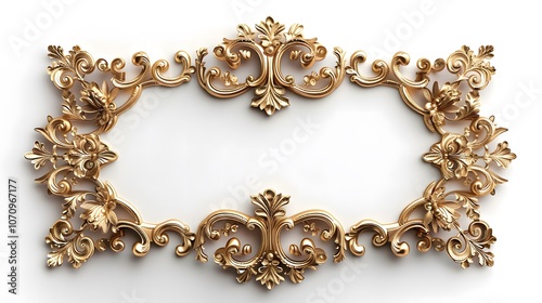 Antique-style ornate frame on a white background with intricate gold detailing. Luxurious classic decoration for design or art