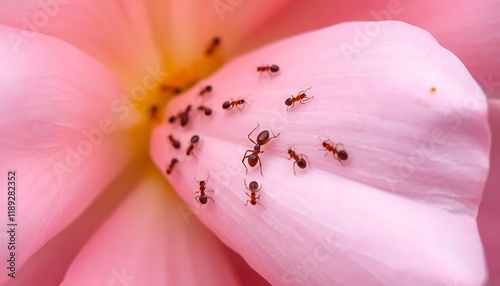 Ants on a Delicate Pink Petal: A Macro Close-up