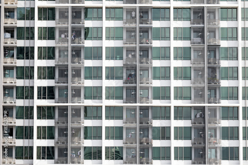 Apartment windows showing a new high rise condo with good real estate rentals and spaces to buy