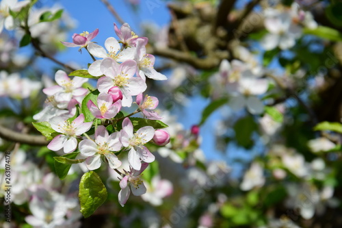 Apfelbaumblüten im Sonnenschein