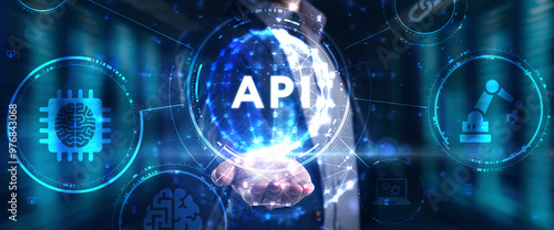 API - Application Programming Interface. Software development tool. Business, modern technology, internet and networking concept.