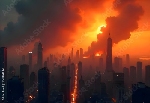 apocalypse, fire, war, ukraine, city, skyline, destruction, smoke, burning, chaos, danger, urban, flames, disaster, crumbled, dark, night, atmosphere, pollution, survival, emergency, heat, crisis, red, threat, devastation, tragedy, smog, death, nuclear, ruin, explosion, blast, fear, inferno, catastrophy, firestorm, silence, building, landscape, building