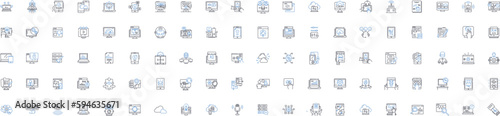 Apparatus line icons collection. Device, Equipment, Machine, Gadget, Instrument, Contraption, Mechanism vector and linear illustration. System,Tool,Appliance outline signs set