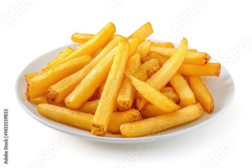 Apple cut fries on plate, isolated, white background. AI generated illustration.