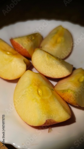 Apple slices on a white plate, a healthy and delicious snack option
