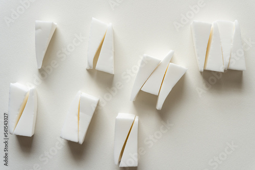 applicators or sponges also known as wedges arranged on blank paper