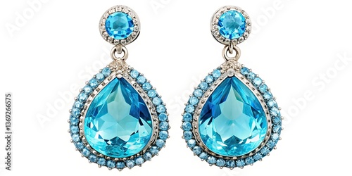 Aquamarine Turquoise Diamond Topaz Pear Shaped Drop Earrings Landscape Photography