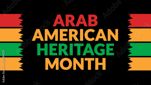 Arab American Heritage Month text with side lines on a black background. Which is observed every year in April to celebrate Arab American Heritage Month.