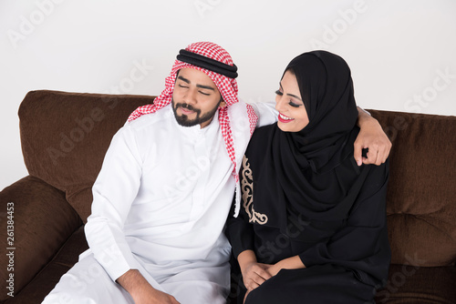 Arab couple sitting at home