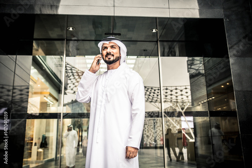 businessman, man, emirate, talk, speak, phone, mobile phone, smartphone, united, adult, alone, arab, arabian, arabic, beard, bearded, business, businessperson, city, country, culture, dress, dubai, east, emirate, headdress, headwear, islam, islamic, leadership, male, meet, meeting, occupation, 1, outdoors, partnership, people, person, portrait, sheik, teamwork, togetherness, white, young