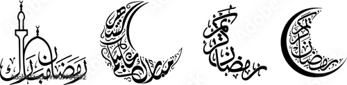 ramadan, calligraphy, arabic, crescent, moon, islam, muslim, religion, spiritual, celebration, holiday, masjid, mosque, eid, art, traditional, greeting, vector, illustration, culture, ornament