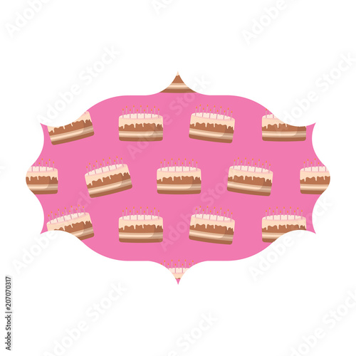 arabic frame with birthday cake pattern over white background, vector illustration