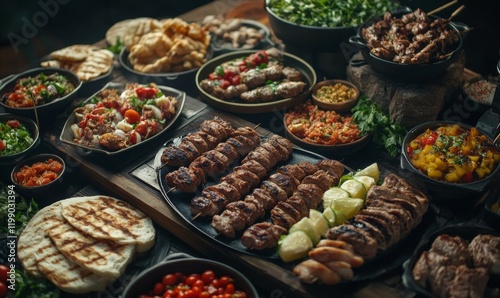 Arabic grilled arabic food dishes kebab, dolma, mansaf, shawarma Turkish and Arabic Traditional Ramadan