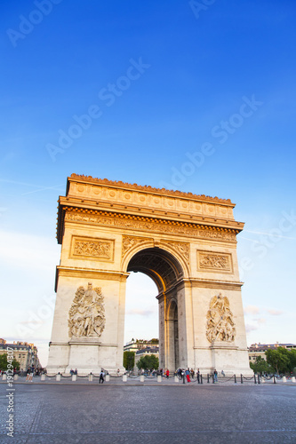 arc, paris, arch, triumph, triumphal, champ, elysees, evening, sunset, sunlight, old, mediaeval, ancient, antique, france, french, europa, symbol, blue, sky, summer, sun, day, morning, light, city, town, view, panorama, architecture, construction, building, historical building, city landscape, landmark, famous, photo, colourful, bright, beautiful, wallpaper, background, picture, travel, postcard, touristic, sightseeing